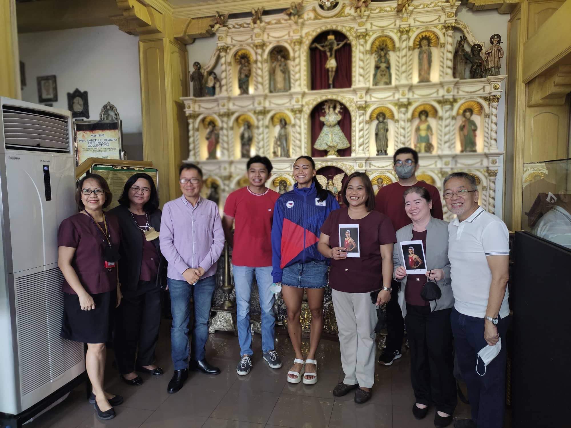 The Kapampangan world-ranked swimmer found time to visit Pampanga and drop by at Holy Angel University to thank the Center for Kapampangan Studies under Mr. Robert P. Tantingco, who successfully nominated her for the Most Outstanding Kapampangan Award in Sports in 2019, given by the provincial government of Pampanga. She was then given a whirlwind campus tour that included visit to the university museums and the chapel. The 2 hour-long visit was also a sort of a homecoming for her father, Noel Sison Sanchez, of Dau, Mabalacat City, a 1981 Holy Angel high school graduate. Kayla was also met by OIC-President Leopoldo N. Valdes, a fellow Fil-Canadian, to whom the young swimmer presented her Olympic Silver and Bronze medals won in the team relays. The OIC-President wished her well in her competitive swimming journey in the Philippines.